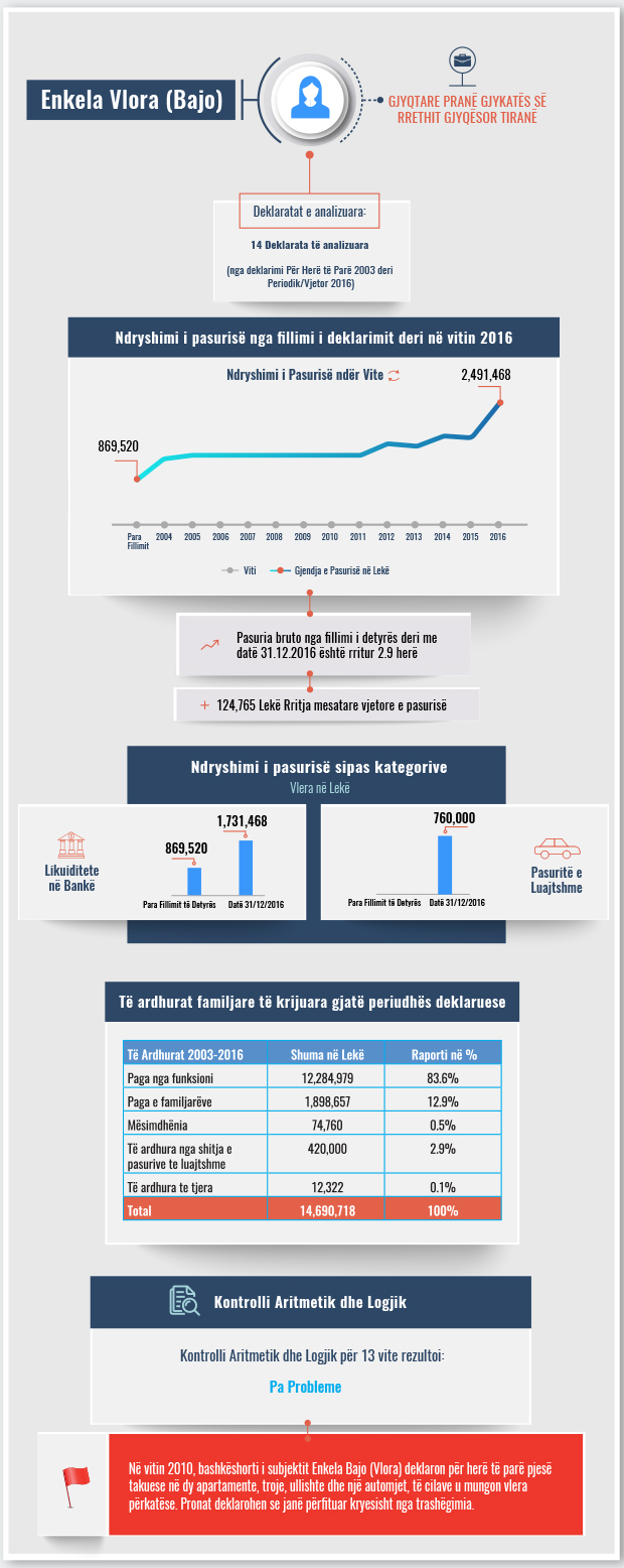 - Vetëdeklarim i Pastërtisë së Figurës në kuadër të ligjit "Për dekriminalizimin", Enkela Vlora Bajo, gjyqtare.